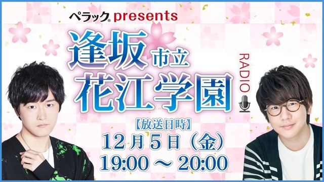 19:00 – 20:00 ペラック presents 逢坂市立花江学園~Radio 逢坂良太、花江夏樹 文化放送『超!A&G+』で放送していた『逢坂市立花江学園~Radio』が、特別番組として一夜限りの復活!第一三共ヘルスケア(ぺラック)提供のもと、懐かしのトークや企画とともにお届けする60分間のスペシャルプログラムです。 もっと見る